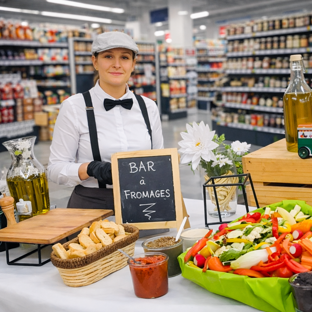 Les produits prennent vie sous les yeux du public : fromages, saumon, jambon, garnitures raffinées… Chaque préparation devient une démonstration concrète de la qualité de votre offre.