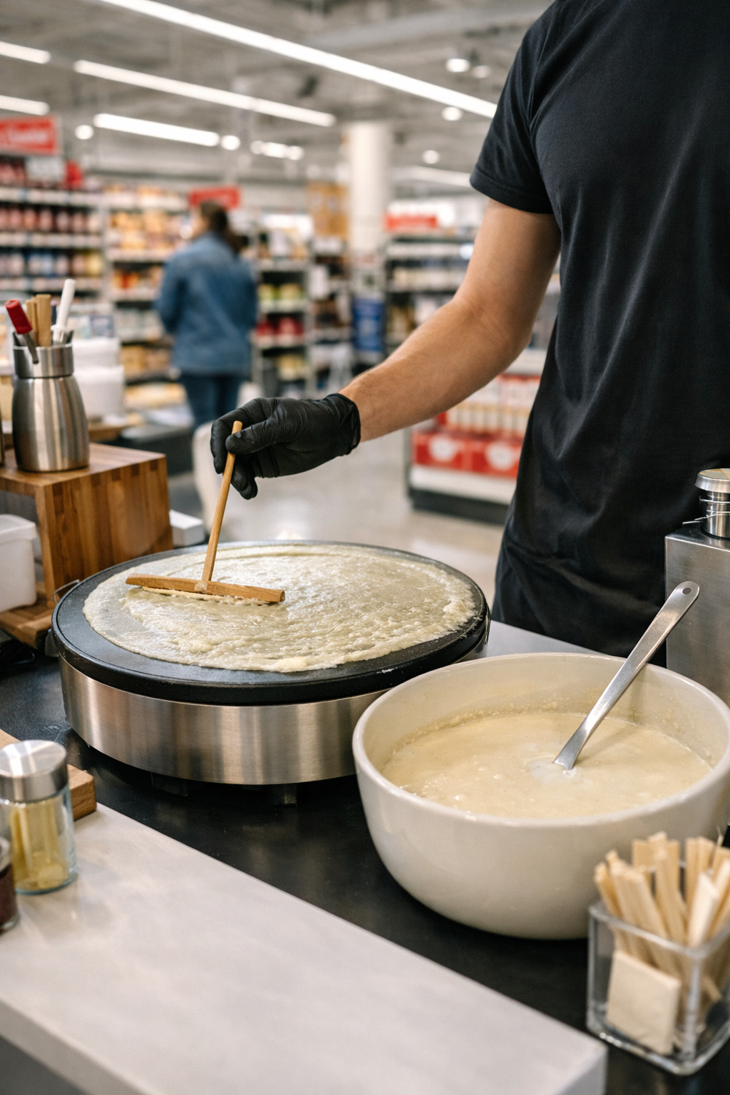 L’odeur des crêpes chaudes attire immédiatement les visiteurs. La préparation en direct transforme votre espace en un point d’attraction vivant et irrésistible.